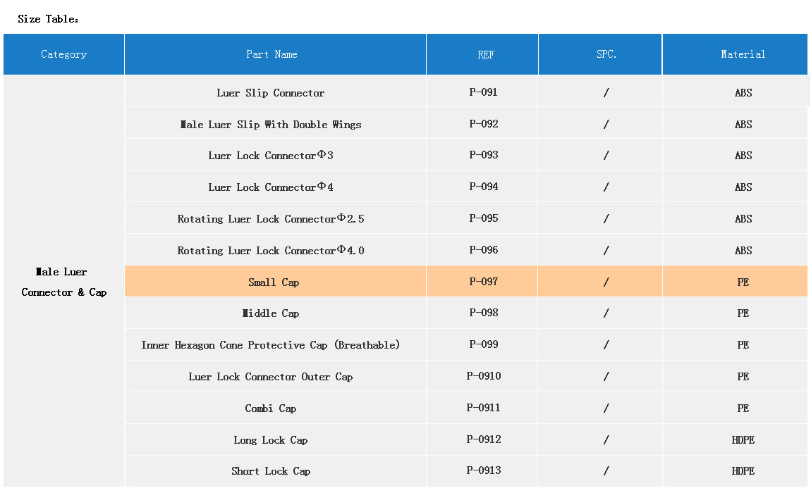 Product Name:JN Components  【Male Luer Connector & Cap】REF P-097