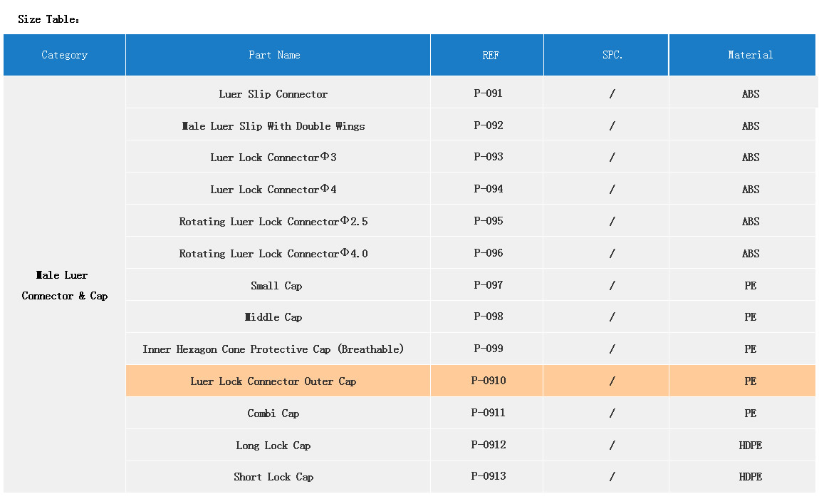 Product Name:JN Components  【Male Luer Connector & Cap】REF P-0910