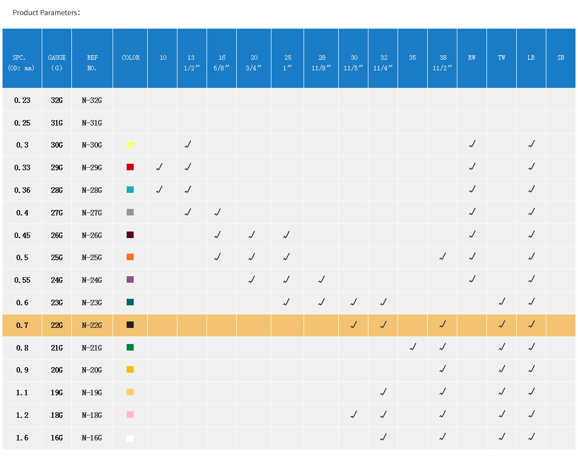 Product Name:Hypodermic needle  REF-N-22G-0.7MM