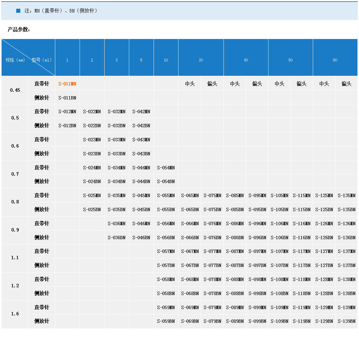 產品名稱:直插帶針  REF-S-011MN-1ML