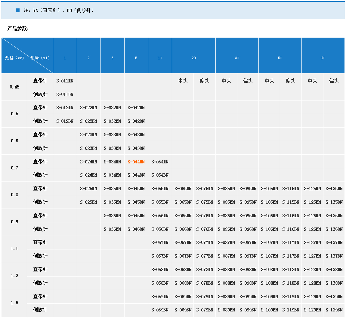 產品名稱:直插帶針  REF-S-044-5ML