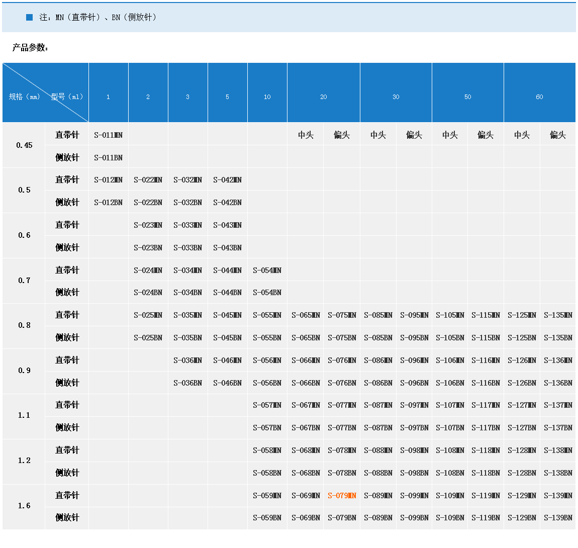 產品名稱:直插帶針  REF-S-079MN-20ML
