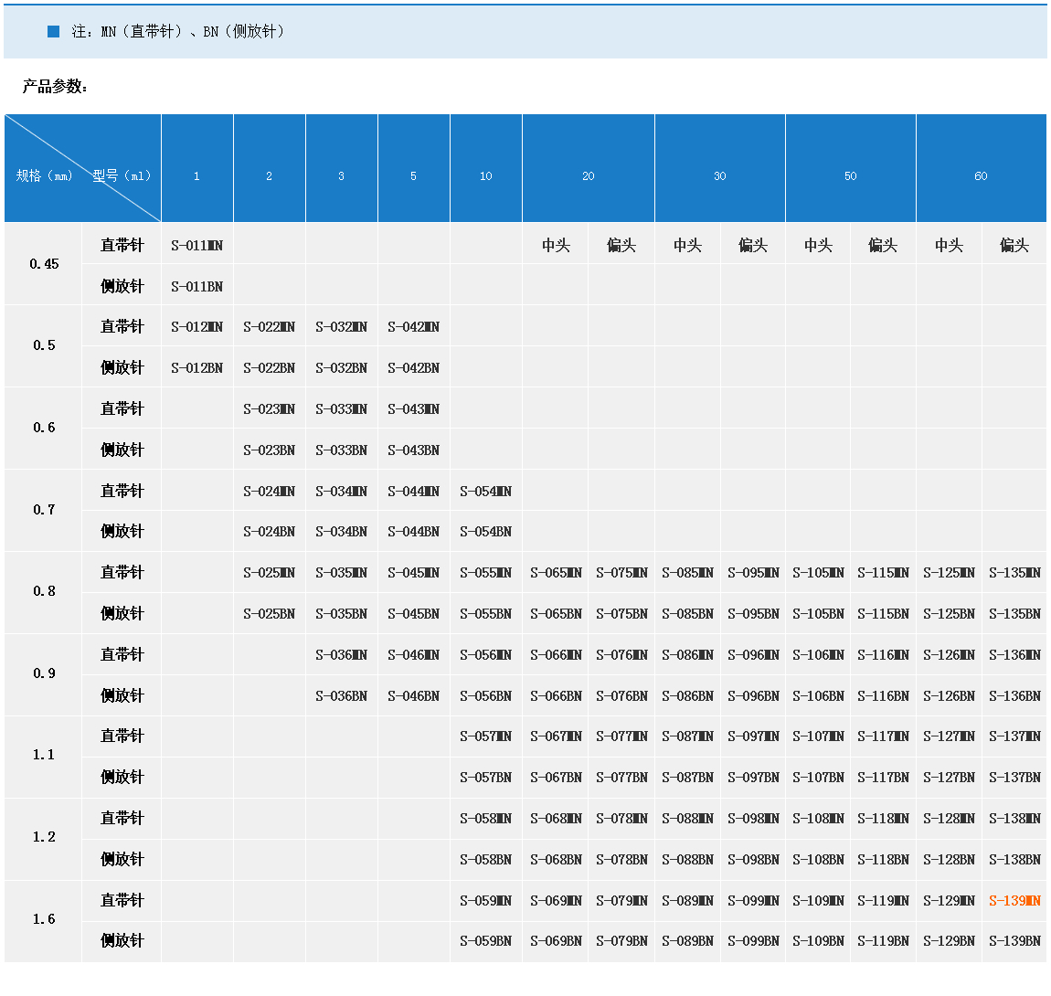 產品名稱:直插帶針  REF-S-139MN-60ML