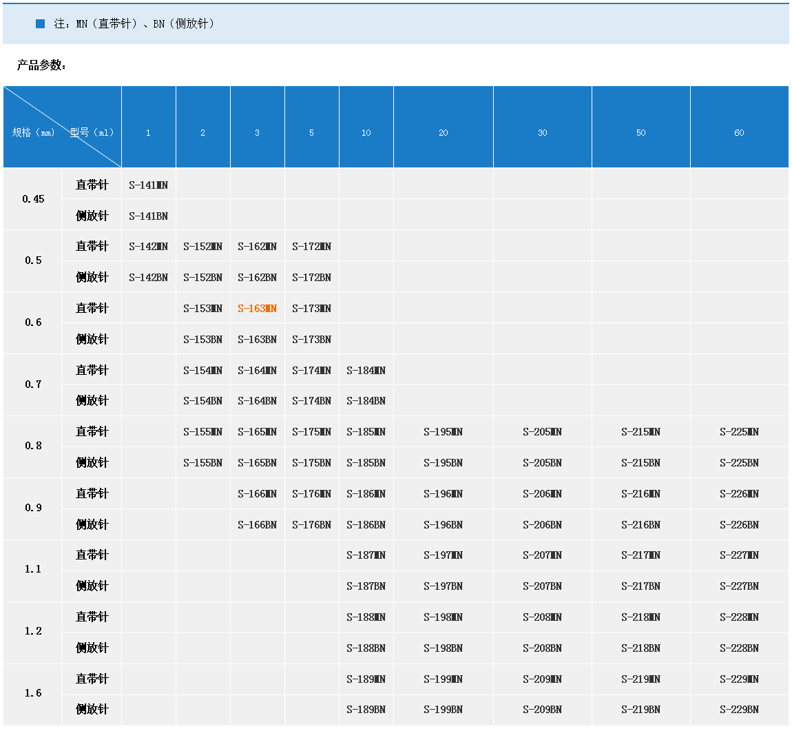 產品名稱:螺口帶針  REF-S-163MN-3ML