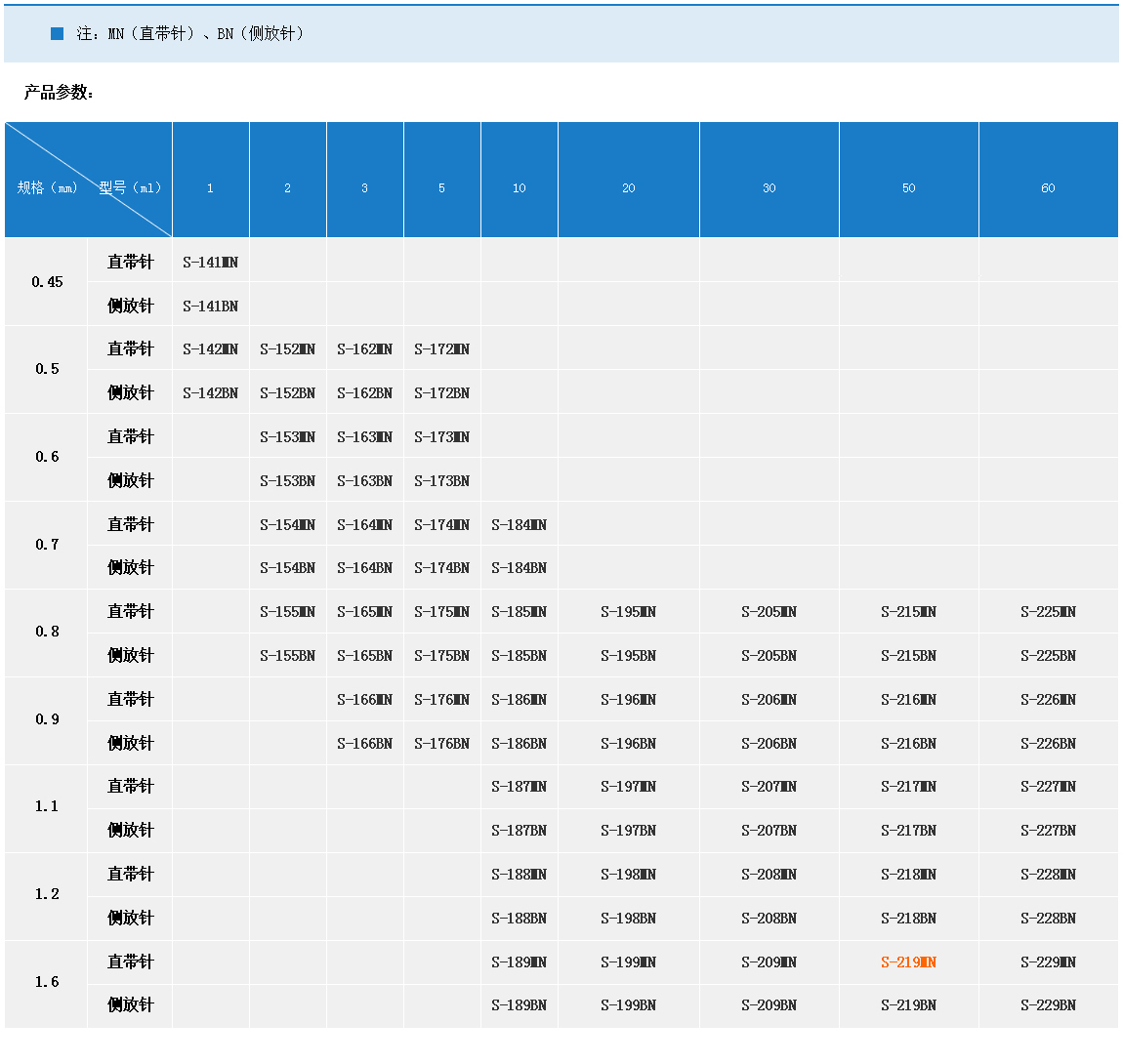 產(chǎn)品名稱:螺口帶針  REF-S-219MN-50ML