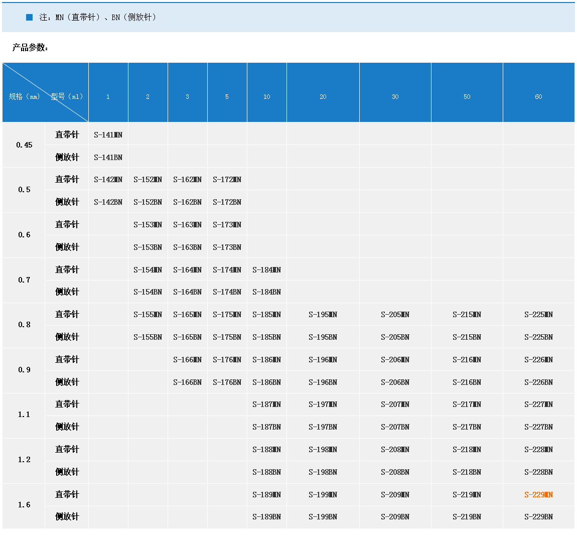 產(chǎn)品名稱:螺口帶針  REF-S-229MN-60ML