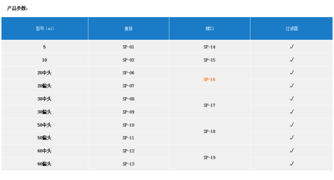 產(chǎn)品名稱:精密過濾溶藥注射器  REF-SP-16