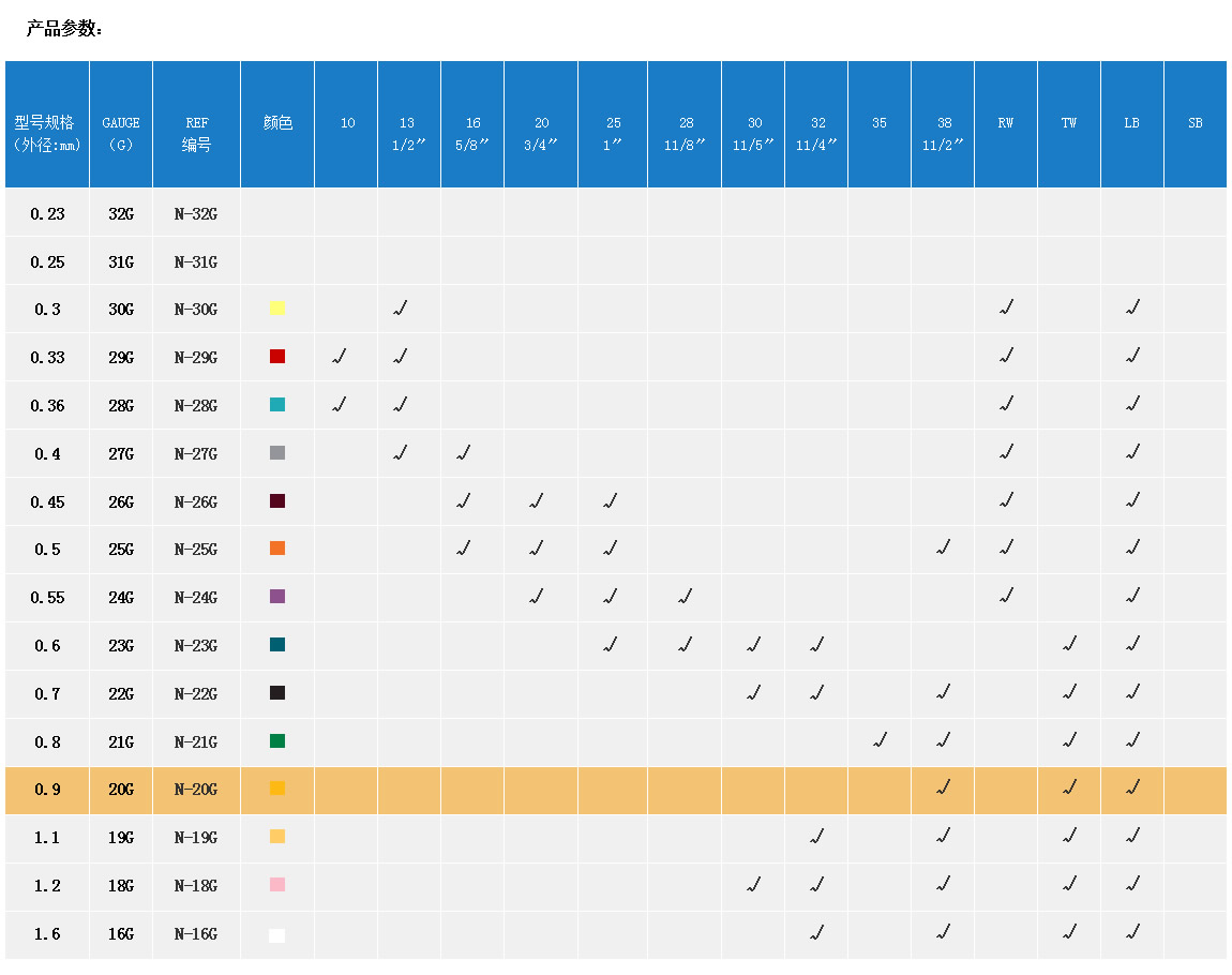 產品名稱:注射針  REF-N-20G-0.9MM