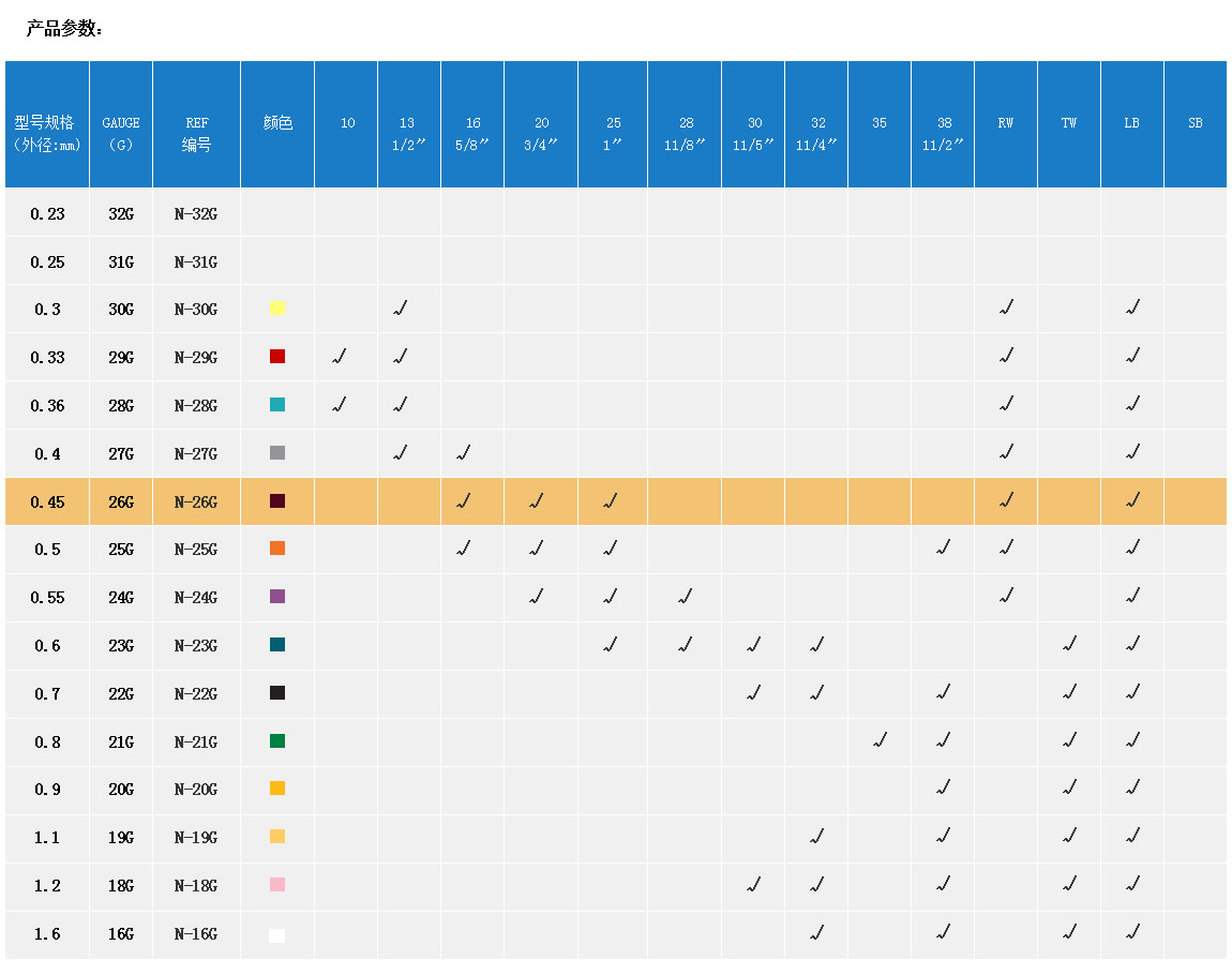 產品名稱:注射針  REF-N-26G-0.45MM
