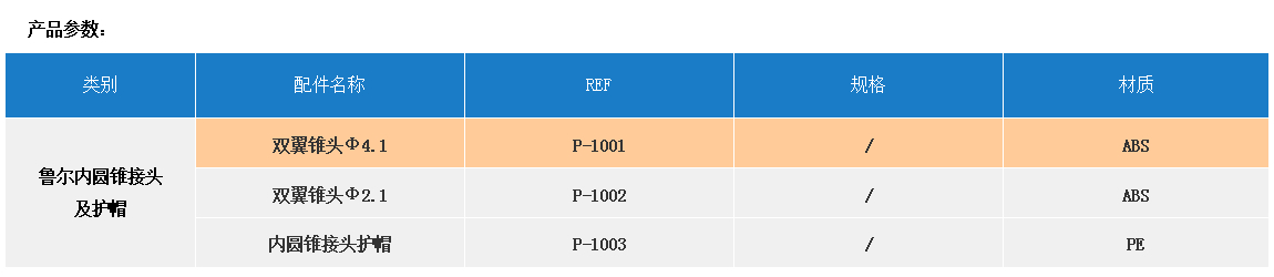 產品名稱:配件  【魯爾內圓錐接頭及護帽】REF P-1001