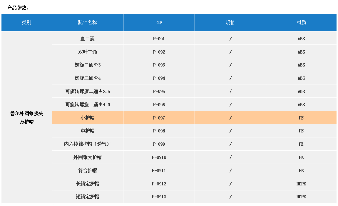 產(chǎn)品名稱:配件  【魯爾外圓錐接頭及護(hù)帽】REF P-097