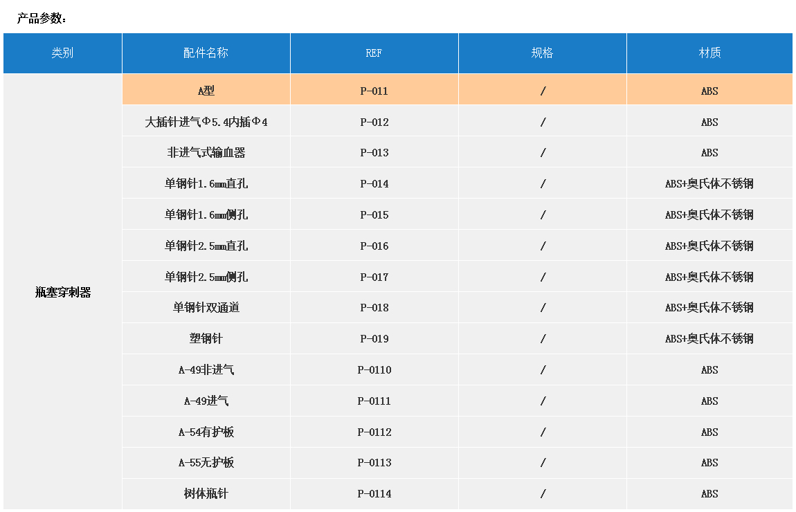 產品名稱:配件  【瓶塞穿刺器】REF P-011