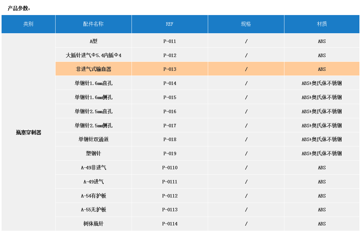 產品名稱:配件  【瓶塞穿刺器】REF P-013