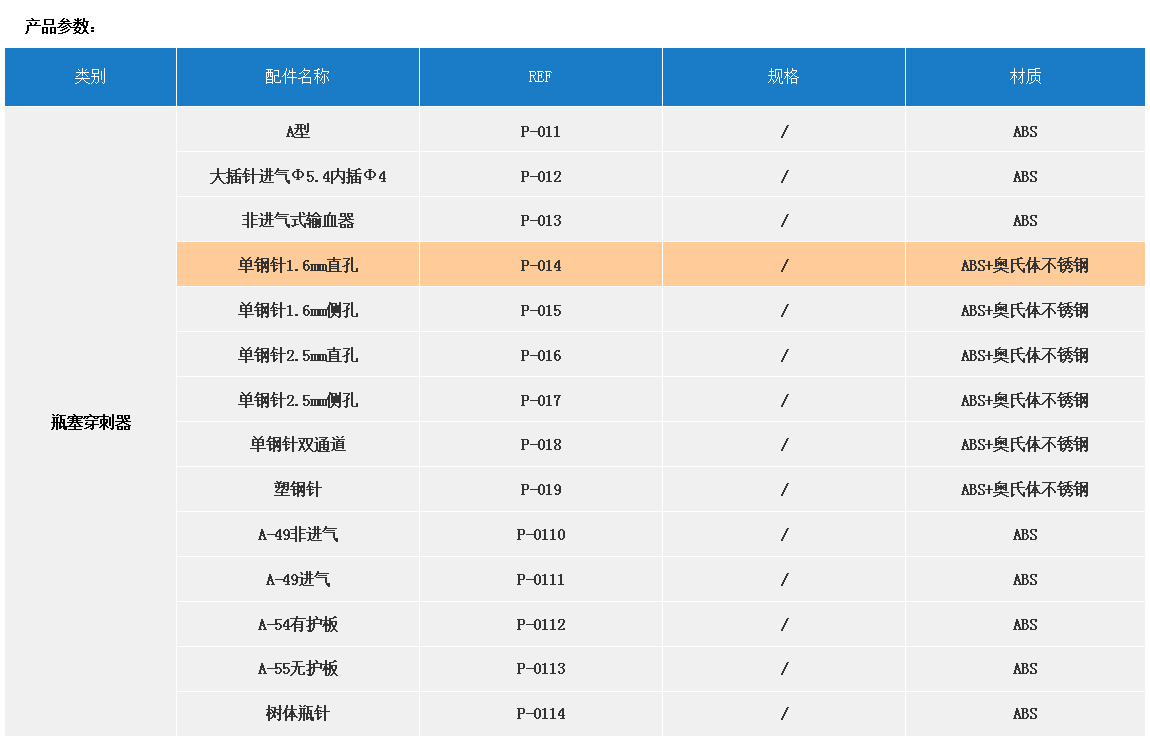 產品名稱:配件  【瓶塞穿刺器】REF P-014