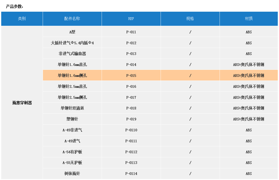 產品名稱:配件  【瓶塞穿刺器】REF P-015