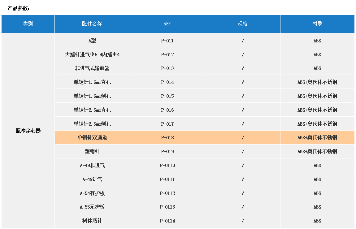產(chǎn)品名稱:配件  【瓶塞穿刺器】REF P-018