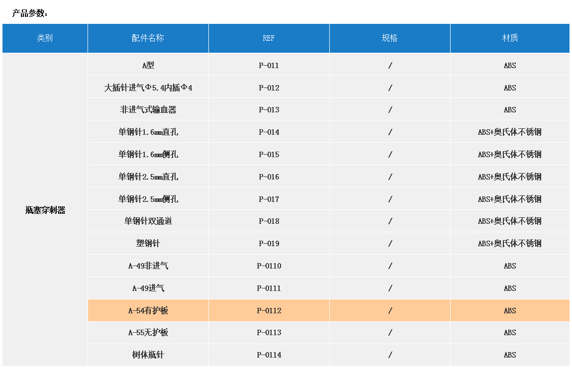 產品名稱:配件  【瓶塞穿刺器】REF P-0112